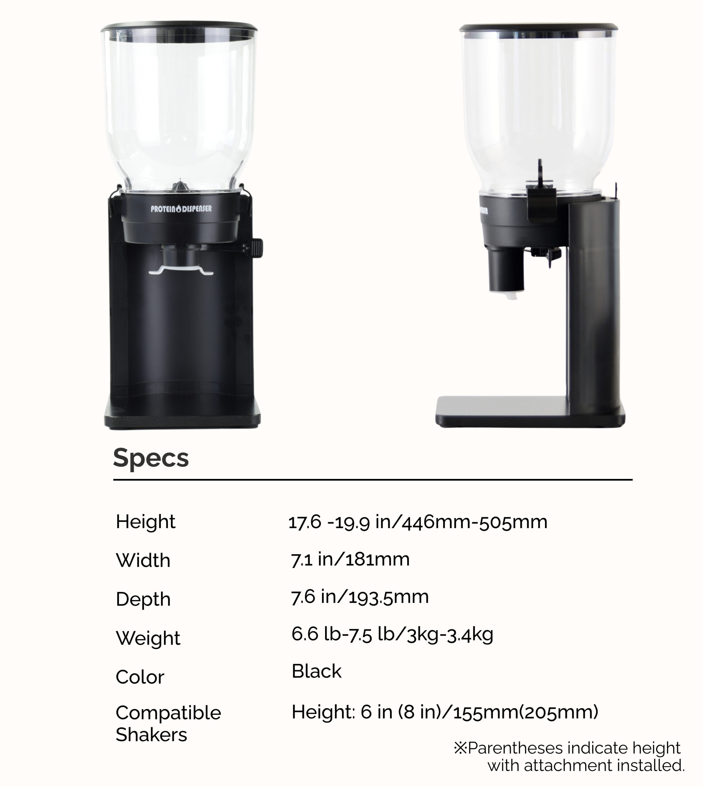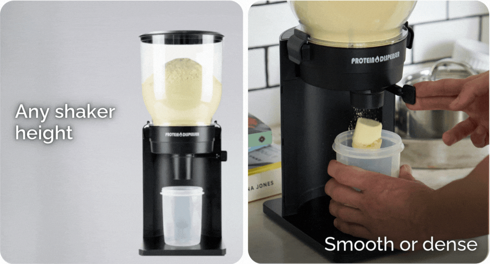 To keep things clean and consistent, PROTEIN DISPENSER includes a height-adjustable attachment, so powder drops cleanly into your shaker, regardless of its height.