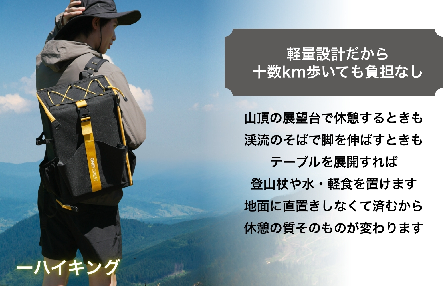 ONE FOREST O2 は、誰にとっても「持ち歩きやすさ」と「使いやすさ」を両立した新しいバックパックです。