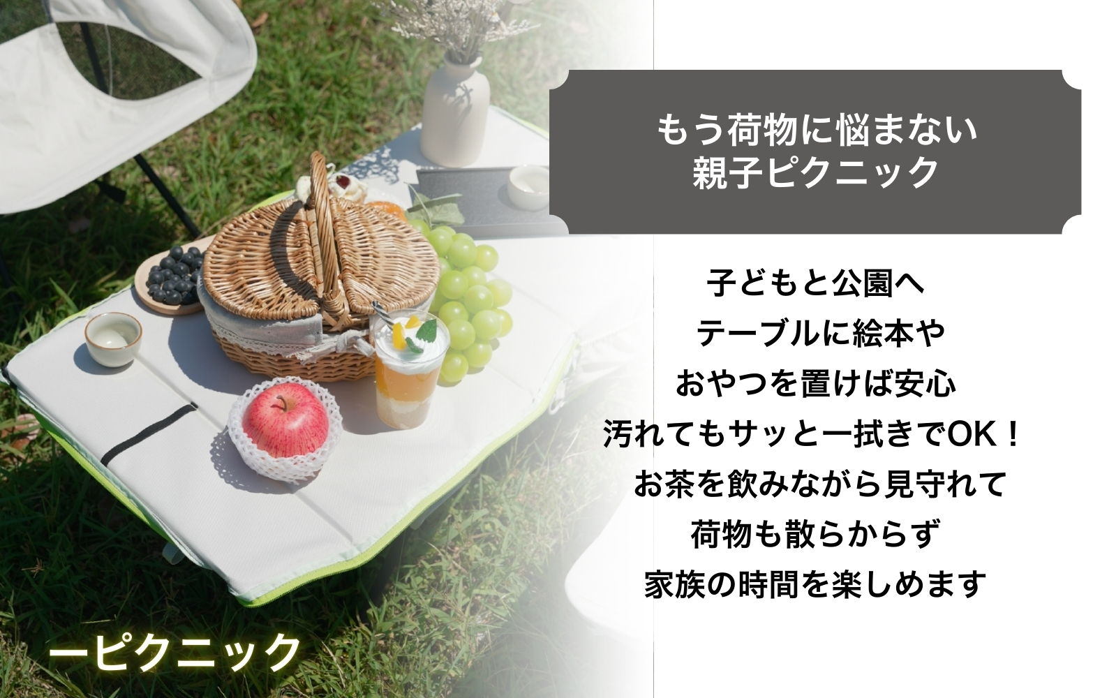 休憩したいときは、その場で広げて即テーブル。