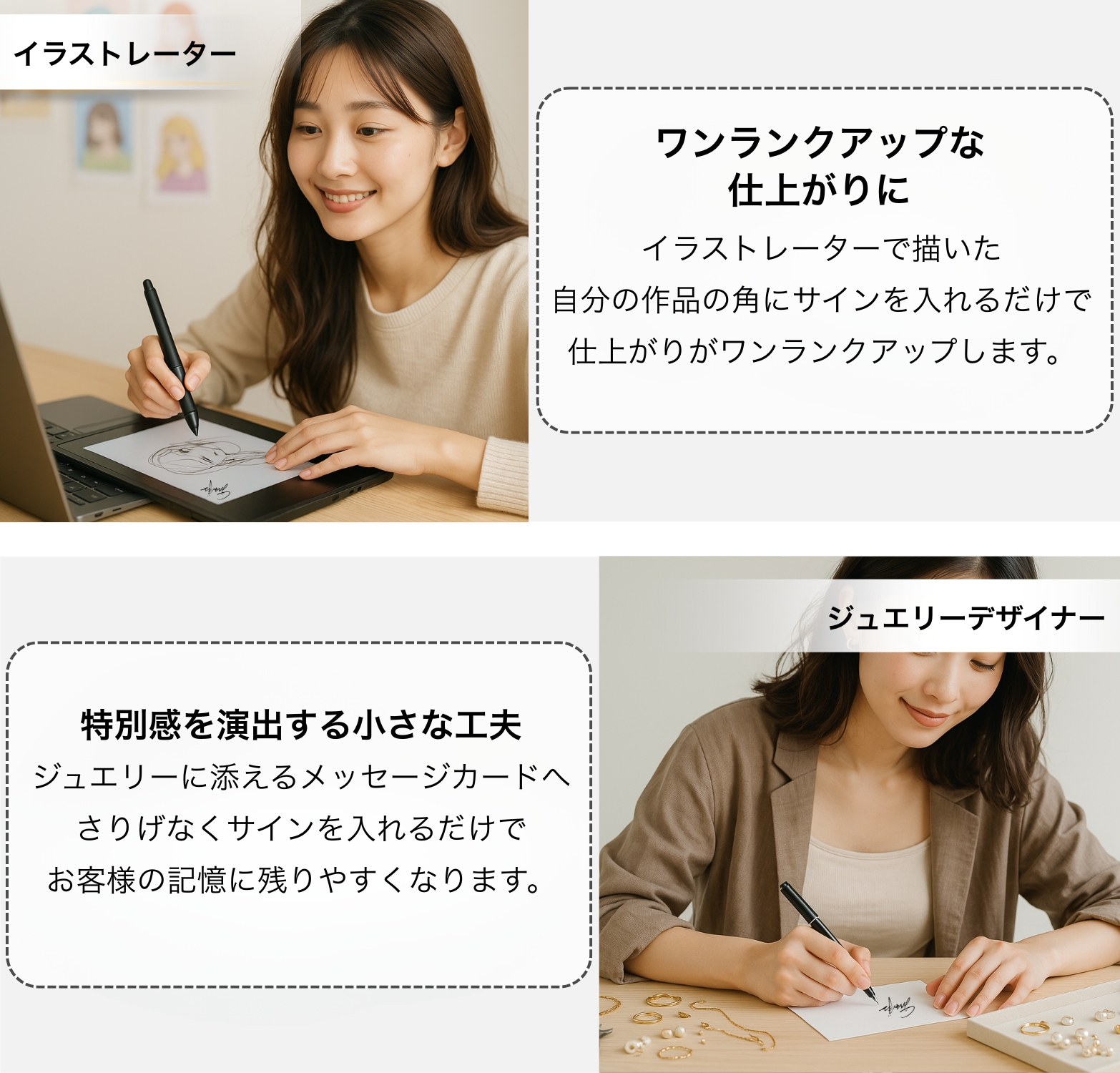 このサインセットは、芸能人や経営者だけでなく、すべてのクリエイターの方にこそ使っていただきたい。
