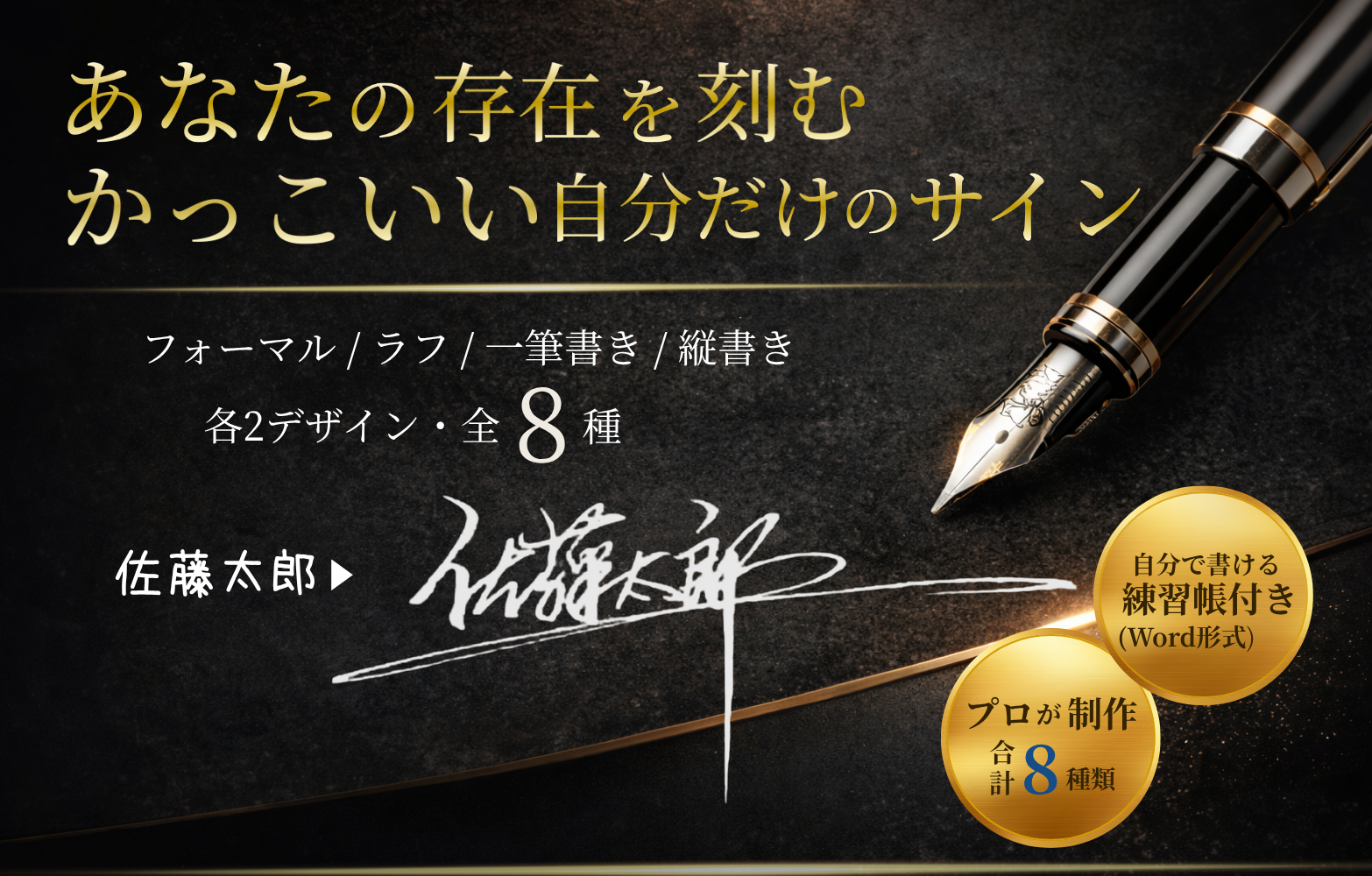 そこで、オリジナルサインセットがあれば、自分だけの“かっこよくて描きやすいサイン”を作ることができ、日常でもビジネスでも重宝します。