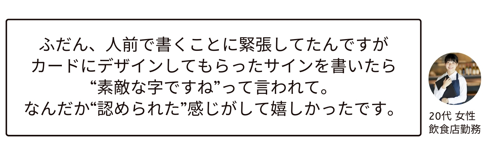 → そのたびに「名前、きれいに書けますね」と言われる小さな嬉しさ。