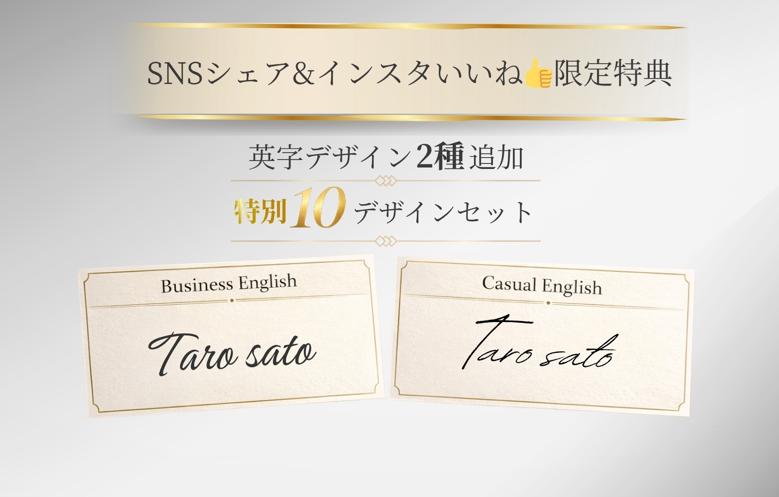 さらに、本クラウドファンディングをSNSでシェア&インスタをいいね👍してくださった方限定の特典として、英字サイン2種をプレゼントいたします。